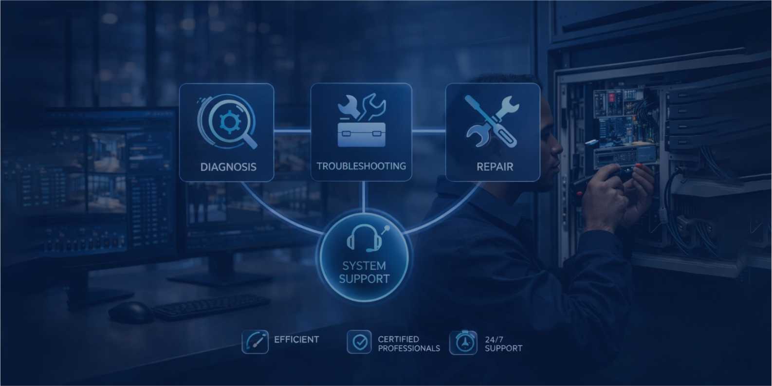 We offer preventive maintenance, troubleshooting, and repair services for access control, CCTV, and related security systems. Our technicians perform routine inspections, firmware and software updates, hardware testing, and repairs to ensure systems operate reliably and efficiently.